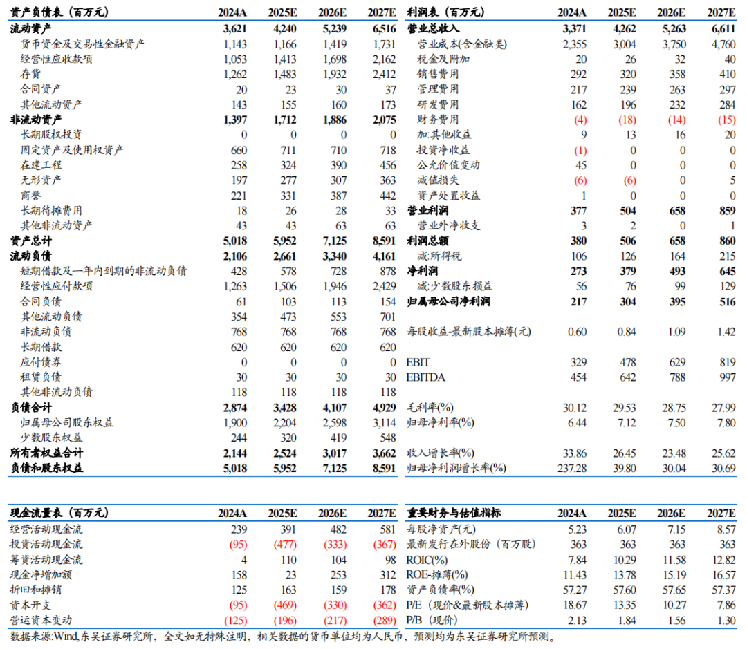 费用率略有波动。公司24年期间费用6.7亿元,同比+48%,费用率19.8%,同比+1.9pct。25Q1期间费用1.7亿元,同环比+11%/+34%,费用率21.2%,同环比-1.3/+7.4pct;25Q1经营性净现金流-0.7亿元,同比+43%,25Q1末存货13亿元,较24年末基本持平。