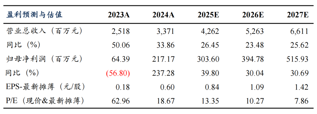 ]article_adlist-->事件:公司2024年实现营收33.7亿元,同比+34%,归母净利润2.17亿元,同比+237%,毛利率30%,同比+5.9pct;其中2024Q4营收9.3亿元,同环比+11%/+12%,归母净利润1.1亿元,同环比+407%/+261%,毛利率25.9%,同环比-0.1/-5.3pct。2025Q1营收8.1亿元,同环比+18%/-13%,归母净利润0.18亿元,同环比+20%/-83%,毛利率27%,同环比-2.6/+1.1pct。